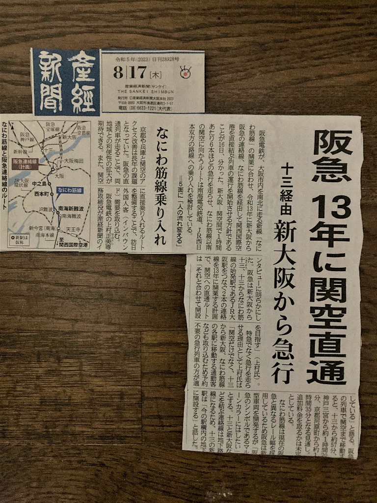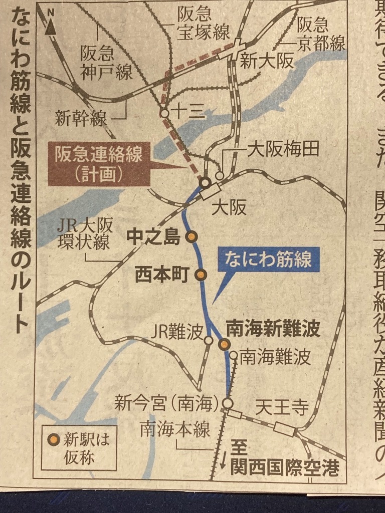 8/17産経新聞朝刊1面にナニワ筋線の記事が出てました。