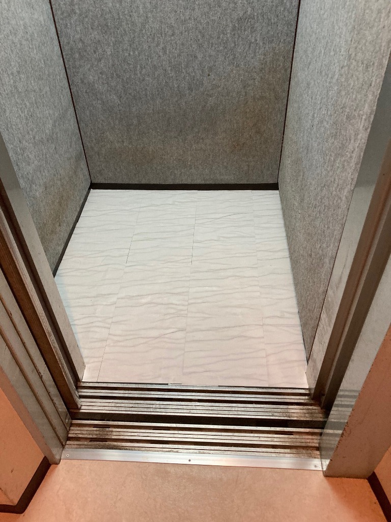 エレーベータ床に3日かけて床シートを張り付けるDIYをしました。