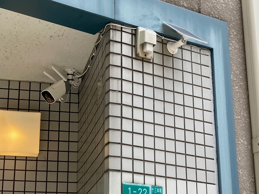十三駅近キッチン付きレンタル「キッチンスタジオ幸楽」のビルの入り口に防犯カメラを取り付けました。